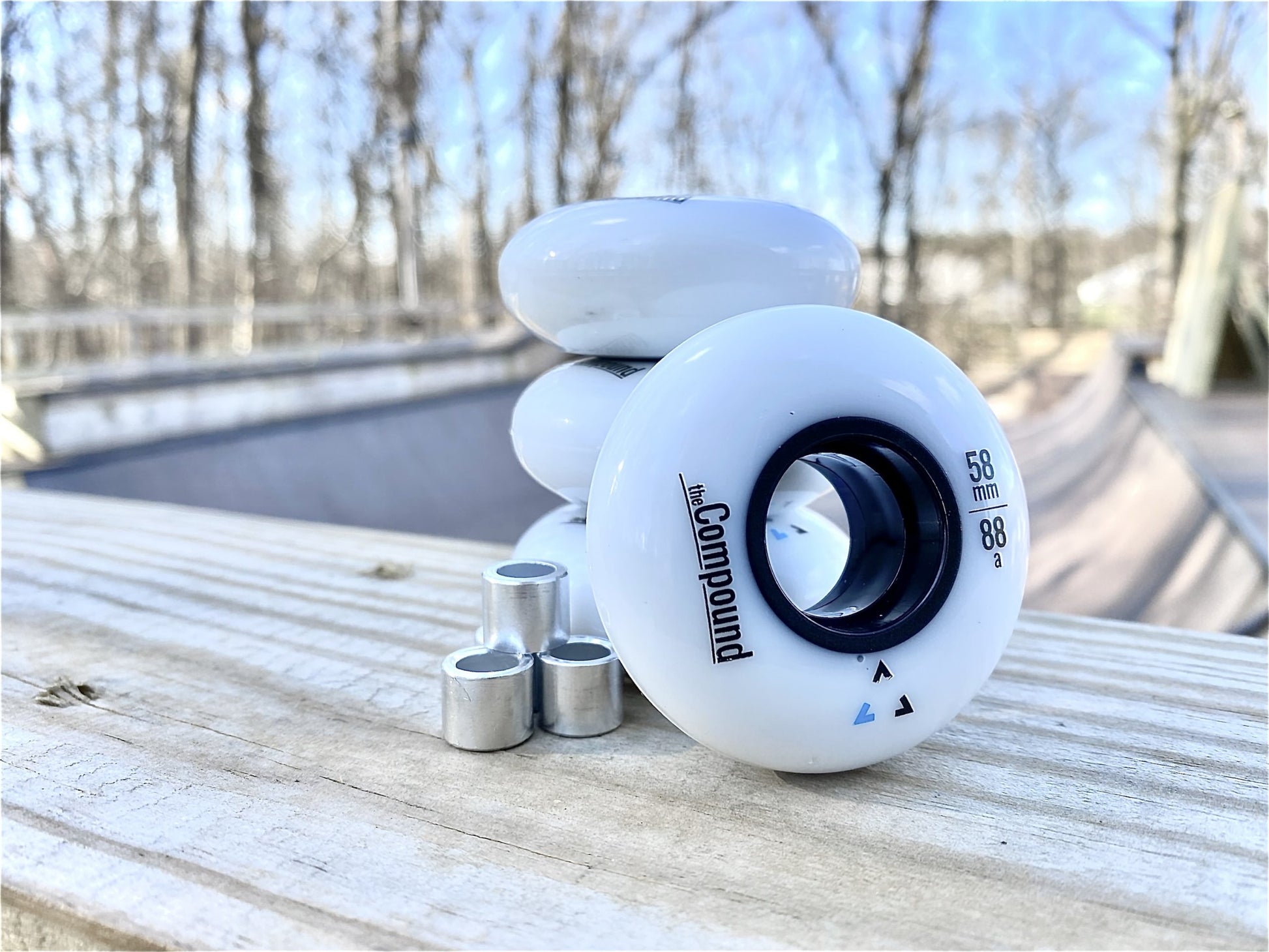 A pack of four 58mm 88A round profile SHR-PU wheels with four 8mm bearing spacers. Recommend for a flat ramp setup.